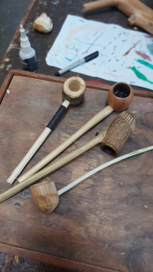 A smoking pipe is a strange, intimate and personal object, a kind of portable community campfire… learn to whittle and carve, shape and join to make one for yourself: something to be truly cherished and connected with!